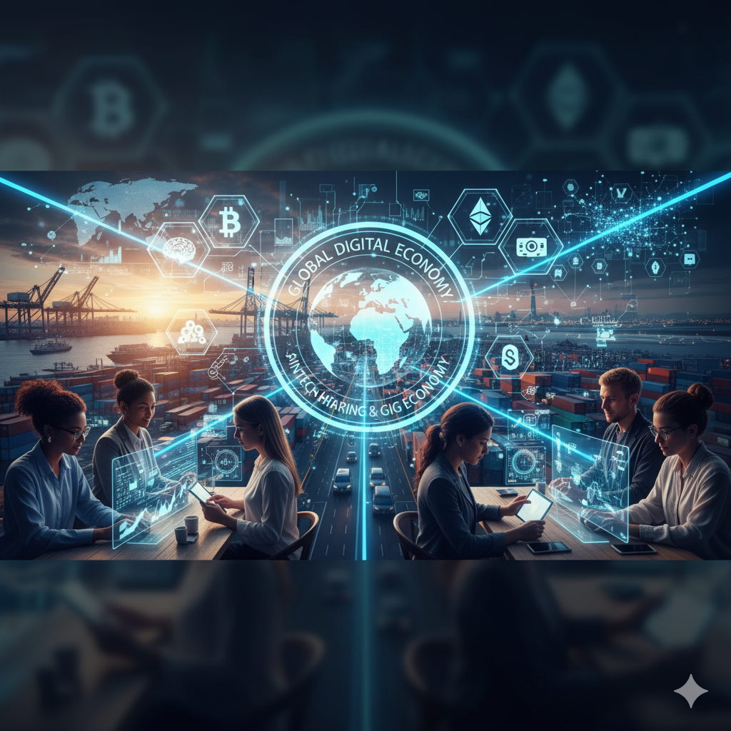 - Ekonomi Berbagi dan Gig Economy: Internet dan platform digital melahirkan model bisnis baru seperti Airbnb dan Uber (sharing economy) dan pekerjaan fleksibel (gig economy).